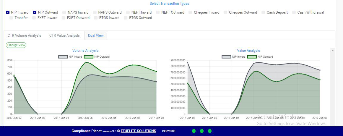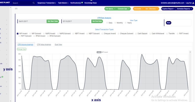 The Compliance Planet software can help you with graphs with the volume and/or value of transactions plotted against the time or period in which they occur. Thus, making financial reporting easier. The software gives an analysis of a selected transaction type over a period of time, here is how to go about it.