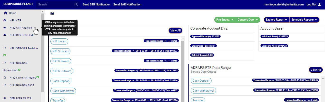 STEP 1: From the left-hand side menu, click on “NFIU CTR ANALYSIS”. See fig. 2.5a
