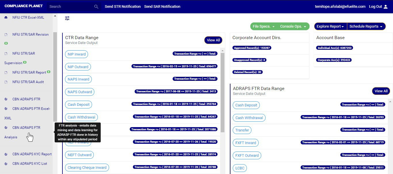 STEP 1: From the left hand side menu, click on CBN ADRAPS FTR Analysis as in fig. 3.6a below.