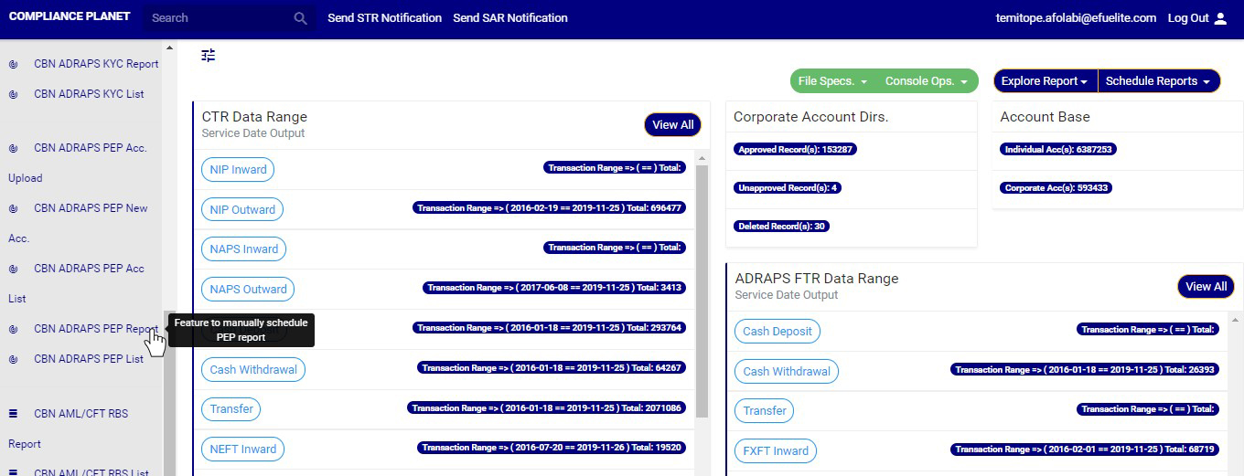 ➔ By clicking on ‘CBN ADRAPS PEP REPORT’, an ADRAPS PEP Scheduler as in fig. 4.6b below will be displayed.