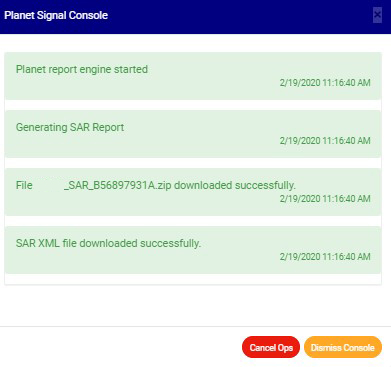 ➔ By clicking on the ‘DOWNLOAD HISTORY’ button, a console as in fig. 6.5ac will be displayed on your screen. To close the console after viewing it, click on ‘DISMISS CONSOLE’ as in the example below.