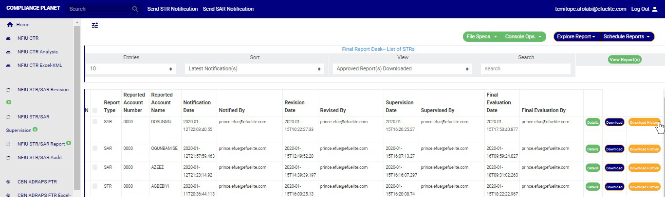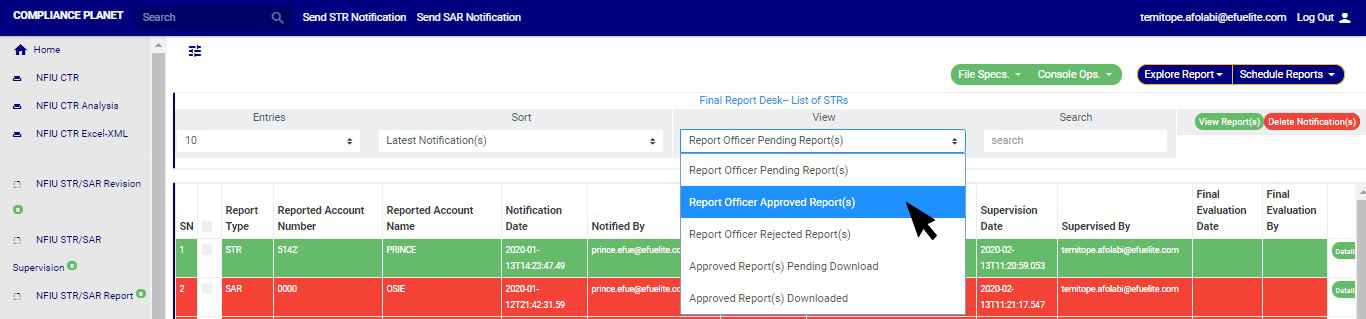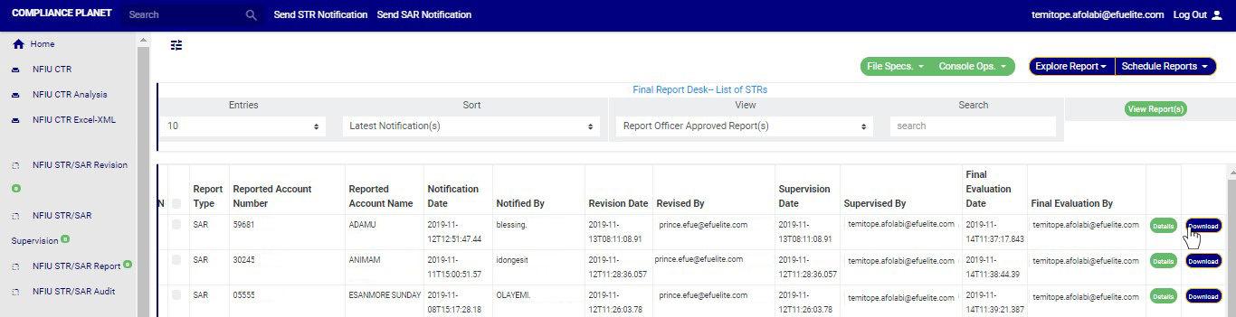 NOTE: Only Person(s) profiled as Report Evaluation Officer on Report Desk and assigned right(s) to download STR/SAR reports can carry out this operation