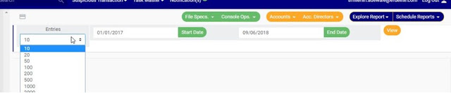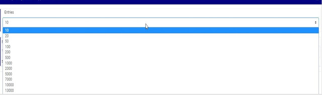 ➔ You can increase the number of reports you want to see per page by clicking on the ENTRIES box. Pick any number of entries per page of your choice. See fig. 5.4e below for an example.