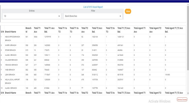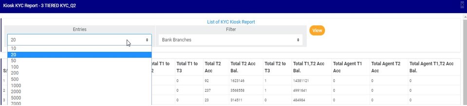 b) Click on the filter box to select a bank branch for which you want to see KYC information. See fig. 5.4j below for an example on how to do this.