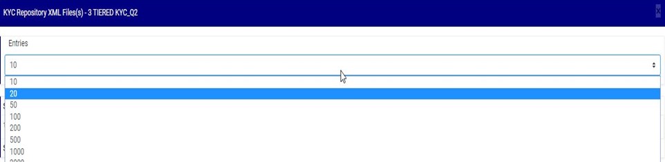 a) Click on the entries box to adjust the number of XML files you want to see per page. See fig. 5.4q below for an example on how to do this. The software will automatically effect your changes whenever you do this.