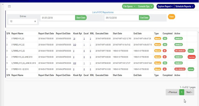 ➔ Back to fig. 5.4g – KYC Repository list page, at the end of each report row, the software shows if the processing of the report is enabled or dis-enabled under the ‘ACTIVE’ column.