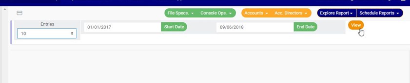 STEP 3: Click on the VIEW button to see the reports. It is an orange colour button at the upper area of the page, next to the END DATE box. By doing this, the software will search out reports that were scheduled for that period you have entered in the date boxes. See fig. 5.4f below to see the pointer clicking on the view button and see the results of the example in fig. 5.3g.