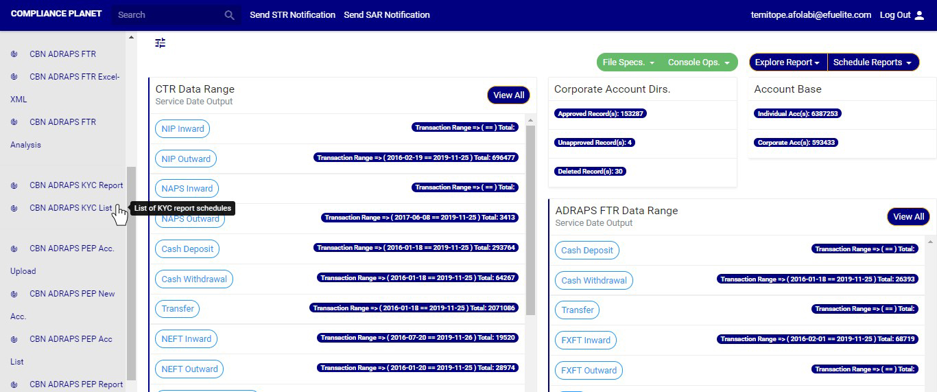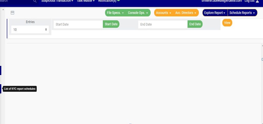 The compliance planet software keeps a record list of all KYC reports that have been manually scheduled. In this section, you will learn how to find your scheduled KYC report and some other features to give you the best experience.