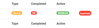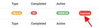 ➔ For reports that have not been completed, there will be an extra button next to their ACTIVE status. This button is used to ACTIVATE or DEACTIVATE the processing of the report. See fig. 5.4g also for an example. The button turns red when the report is enabled and it can be used to DEACTIVATE the report. It is green when the report is dis-enabled and it can be used to ACTIVATE the report for processing.
