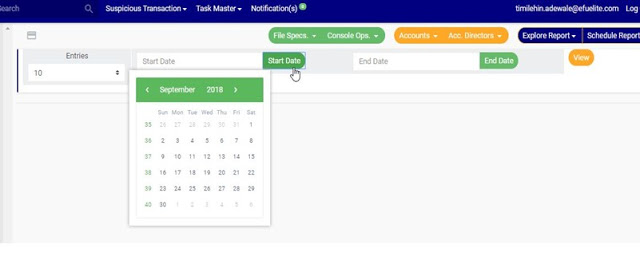 STEP 2: Click on the START DATE button/box and the END DATE button/box to set the beginning and the end of the period in which the reports you want to see have been scheduled for. See fig. 5.4c below for an example and check out fig. 5.3e to study the use of the calendar.