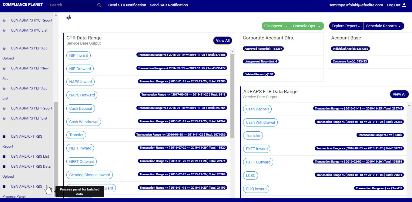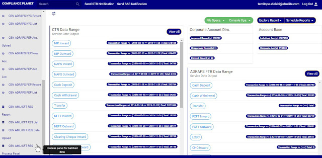 ➔ From the left hand side menu, click on CBN AML/CFT RBS PROCESS PANEL as in fig. 7.6a below.
