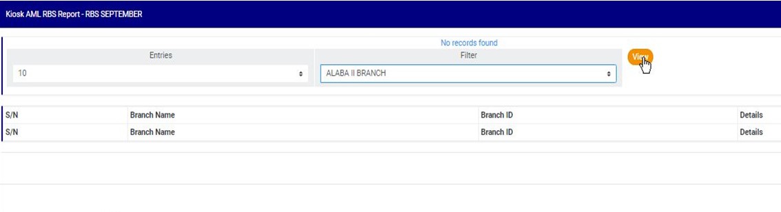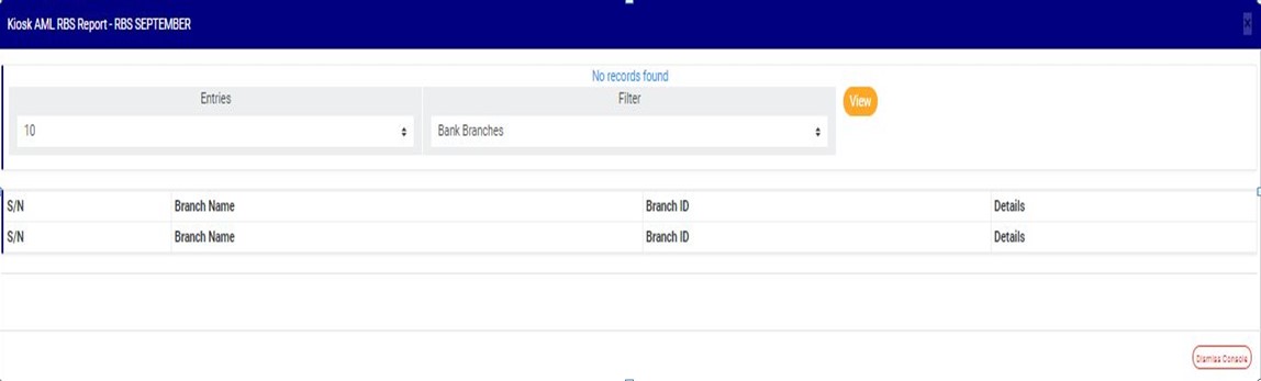 ● This will display a ‘Kiosk AML RBS Report’ console as in fig. 7.4p below.