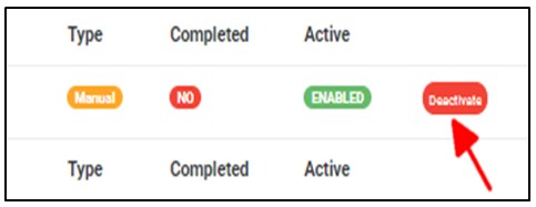 ➔ For reports that have not been completed, there will be an extra button next to their ACTIVE status. This button is used to ACTIVATE or DEACTIVATE the processing of the report. Also see fig. 7.4w above. The button turns red when the report is enabled and it can be used to DEACTIVATE the report. It is green when the report is dis-enabled and it can be used to ACTIVATE the report for processing.