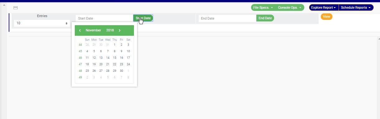 ➔ You can make changes to previously specified date range. Whenever the date range is changed, you will have to click the ‘view’ button for the software to display the scheduled reports that fall within that date range.