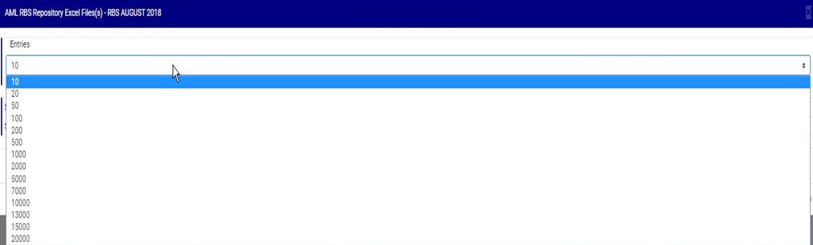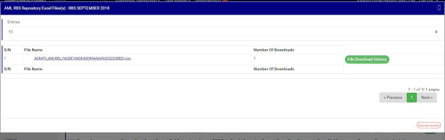 ● An AML RBS excel file repository console as in fig. 7.4u will be displayed. This page gives information about the users that have downloaded the excel file
