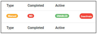 ● Click on Activate to enable the processing of report. This turns the status bar of the report to green with an ‘ENABLED’ inscription. See fig. 7.4x and fig. 7.4y for an example.