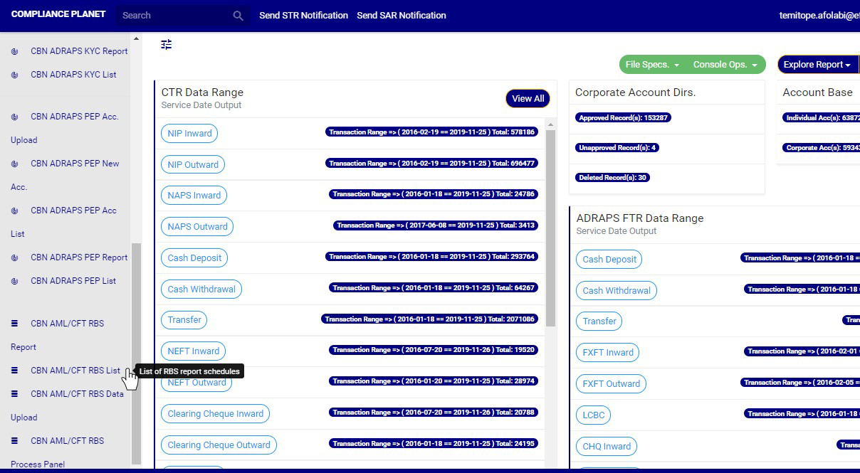 STEP 1: From the left hand side menu, click on CBN AML/CFT RBS list as in fig.7.4a below.