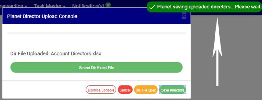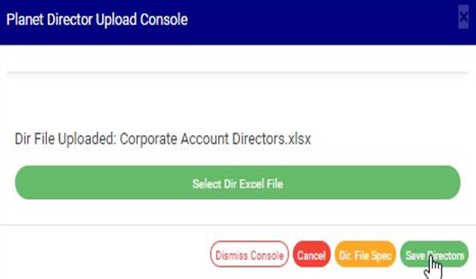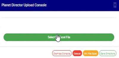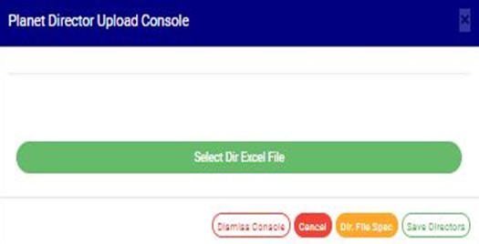 ➔ This displays a ‘Planet Director Upload’ console. On this console, you select from your computer, an excel file filled with the required information for directors accounts to be added on the software. See an example of the console in fig. 10.2b below.