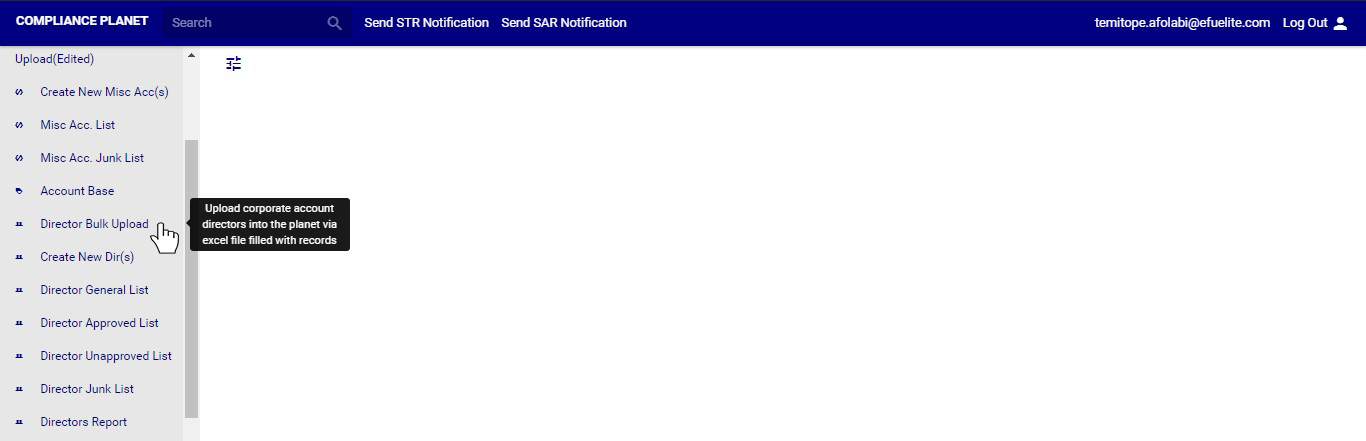➔ From the left hand side menu, click on ‘Director Bulk Upload’ . Check out fig. 10.2a below to see an example.