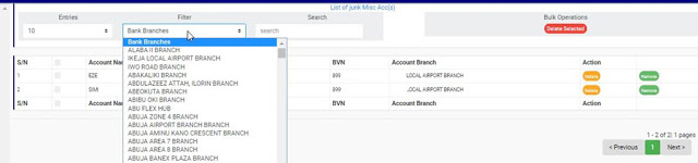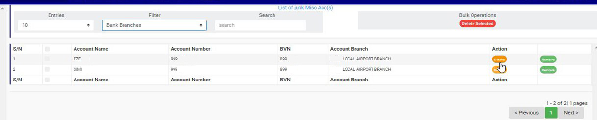 ➔ To see deleted accounts pertaining to any one of the branches, select branch name from the filter box as in fig. 8.7d below. The default account list is always for all branches. The list will be generated immediately you make your selection.