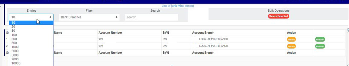 ➔ You can increase the number of accounts you want to see per page by clicking on the ENTRIES box, to pick any number of entries per page of your choice. See fig. 8.7c below for an example.