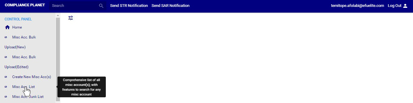 This operation involves searching out miscellaneous accounts that exist on the Compliance planet. Here, the software can give you miscellaneous accounts from each branch of the institution or all the branches together.