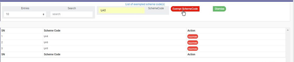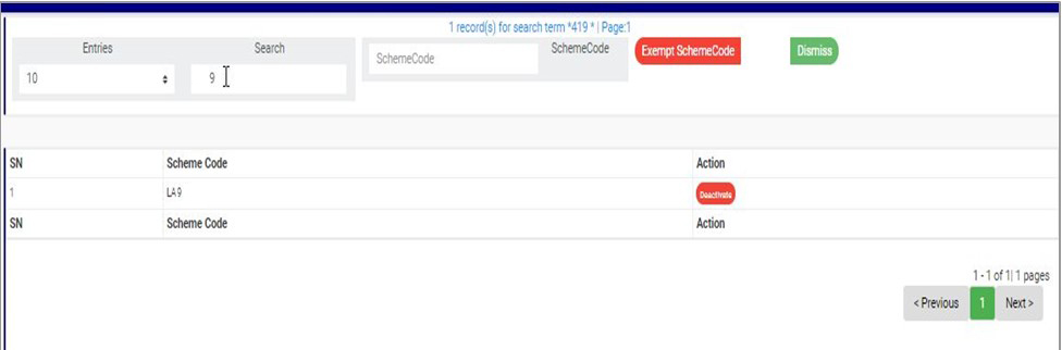 ➔ Type a scheme code in the search box to search for an exempted scheme code. See an example of a search in fig. 17.2e below.