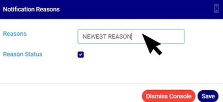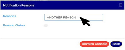 STEP 2: Click on the reasons textbox to change the Notification reason description. See an example in Fig 21.2c below.