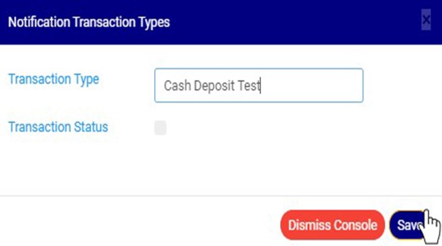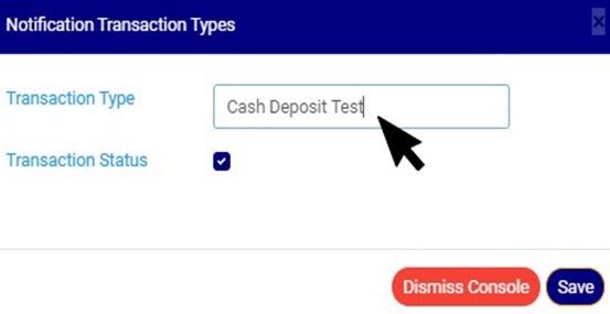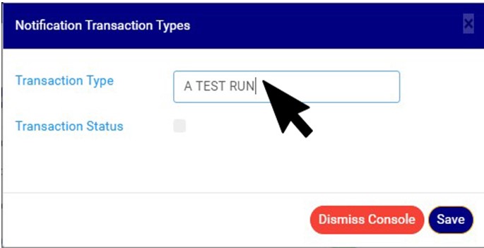 STEP 2: Click on the transaction type textbox to change the Notification transaction type description. See an example in Fig 20.3c below.