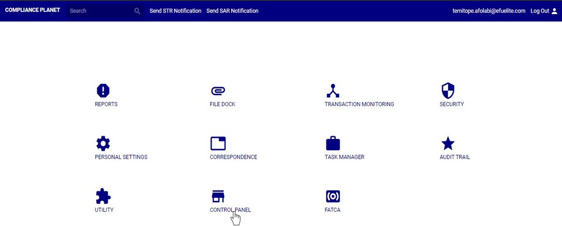 STEP 1: From the main dashboard, click ‘CONTROL PANEL’ as in fig 20.2a below