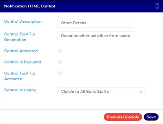 Clicking on the edit button will display a ‘Notification HTML Control’ console See fig. 24.1e below for an example.