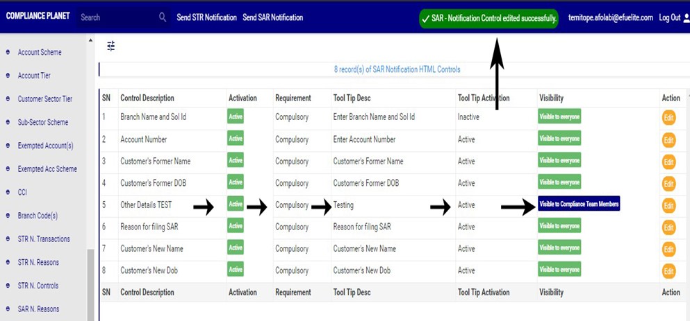 These controls include; Branch Name and Sol Id, Account Number, Customer’s Former Name, Customer’s Former DOB, Other Details, Customer’s New Name, Reason for filing SAR, Customer’s New Dob etc.
