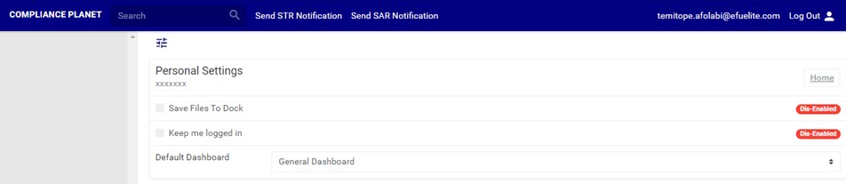- When you untick this checkbox to deactivate the feature, the software will display a notification at the top of the page and the status bar will change from ‘ENABLED’ to ‘DIS-ENABLED’. This means that any time you open the compliance planet software, you will have to provide you log-in credentials before accessing the Compliance planet features. See fig. 29.3b for an example.