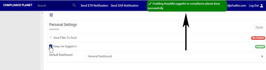 This refers to enabling or dis-enabling the automatic login of your account credentials on the Compliance Planet. To activate or deactivate the automatic login of your account whenever you open the Compliance Planet on your computer, click on the ‘KEEP ME LOGGED IN’ checkbox.
