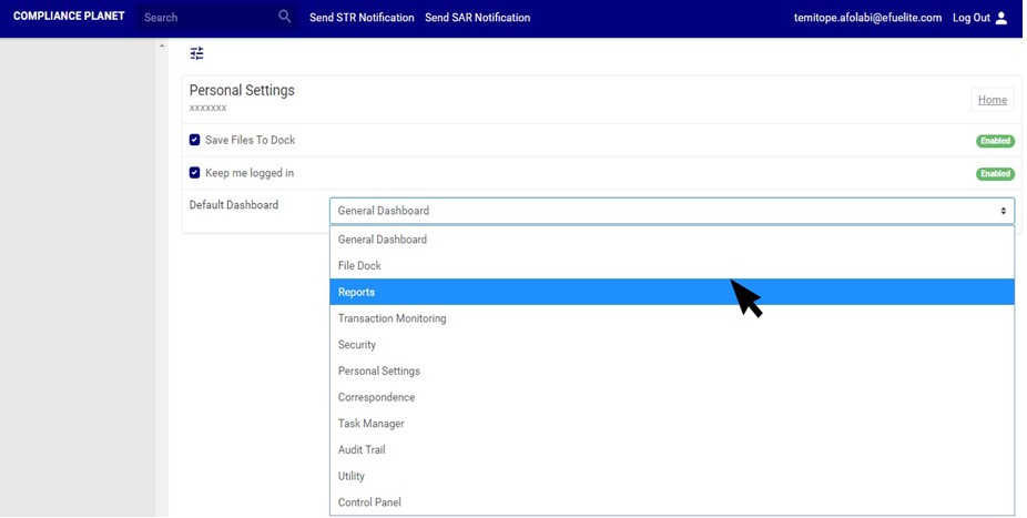 This section provides a guide on how to make personal settings on the Compliance Planet, with step-by-step instructions and pictures.