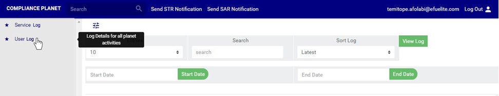 The Action log provides a list of activities or actions that were carried out successfully and completed on the Compliance Planet software in a chronological order at any time. Here is how to view an action log for any period of time.