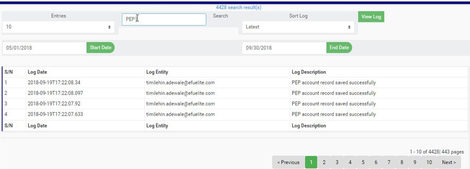 - You can sort out the records to be seen from the latest to the earliest or vice-versa. Specify the order of the list by clicking on the ‘Sort Log’ box as in fig. 28.4k below.