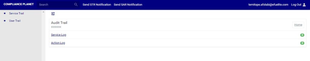 The audit trail menu houses features that provide information on the occurrence of the compliance planet services and significant actions carried out successfully on the compliance planet. The audit trail section comprises of;