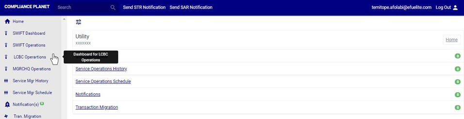 - Click on ‘LCBC Operations’ on the on the left hand side menu as in fig. 32.0b.