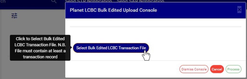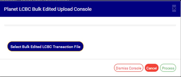 - This will display a ‘Planet LCBC Bulk Edited Upload Console’ as in Fig32.3k below.