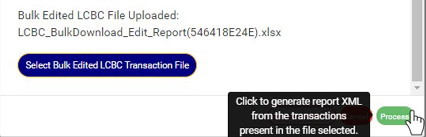 - An excel file with data of the LCBC transactions will be downloaded when the process is complete.