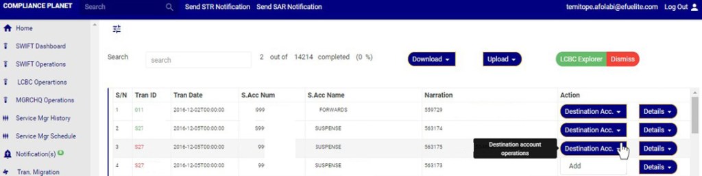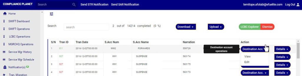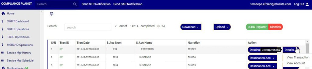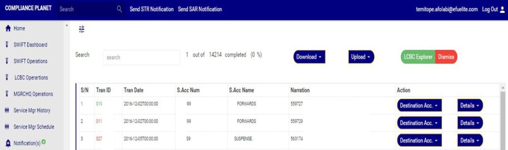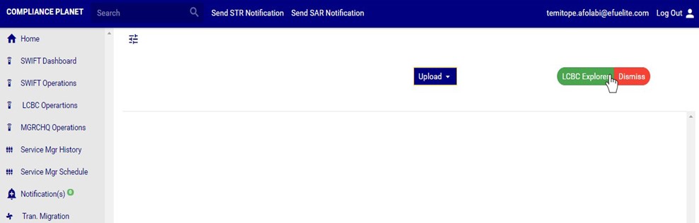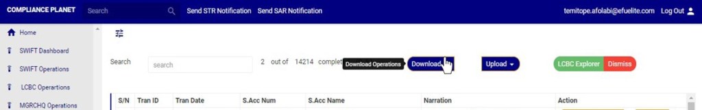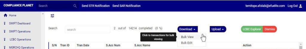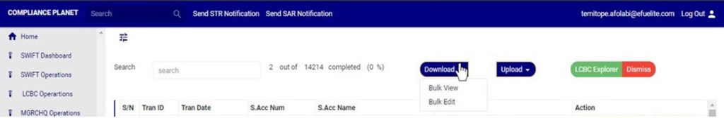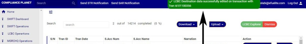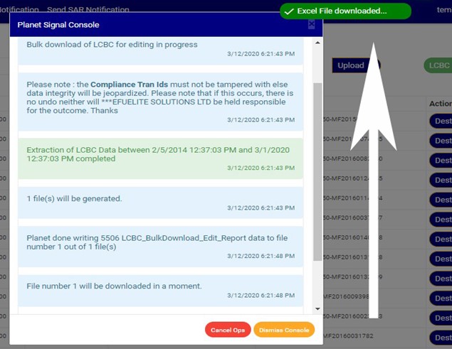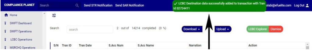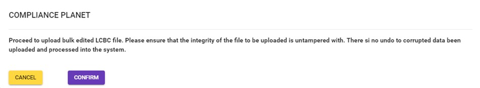 An excel file with details of the LCBC transaction will be downloaded when the process is complete. The details on the downloaded excel file can be edited and uploaded on the software to update multiple LCBC transaction details at once. However, the ‘Compliance tran Id’ for each record on the excel file must not be tampered with for the upload to be successful.