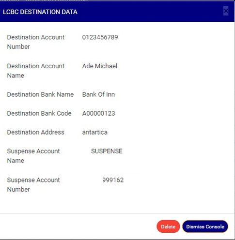 A. How to View and Delete ‘Destination Account’ Data Attached to An LCBC Transaction