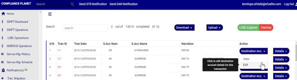Note: You need to be assigned right to ‘view LCBC transactions’ and ‘Screen Edit LCBC transactions’ to be able to Edit attached destination account data.
