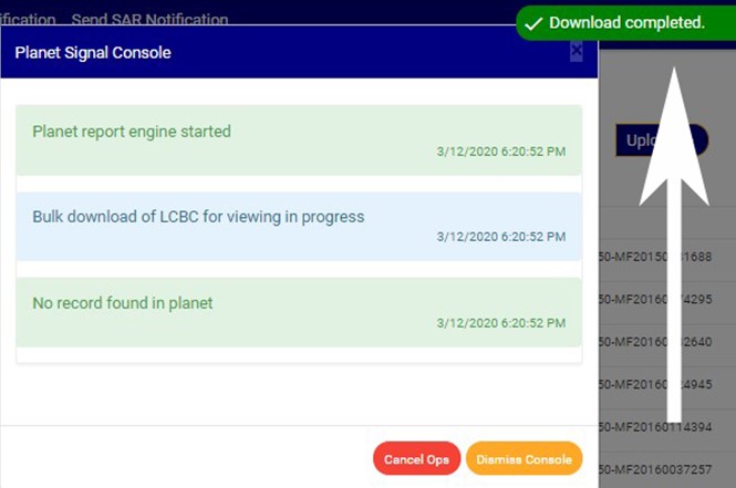 - The signal console shows on going processes. An example of a signal console is fig 32.3i. You can terminate unfinished processes by clicking ‘CANCEL OPS’.