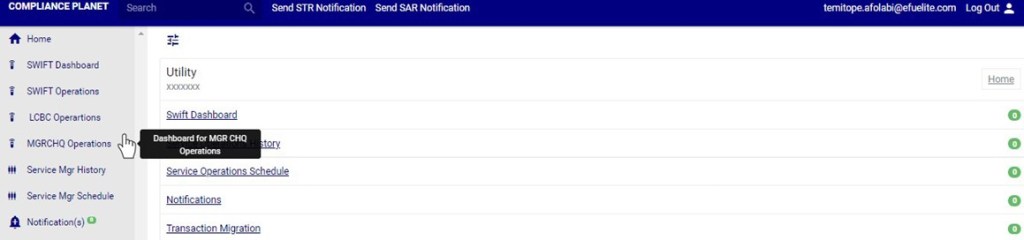 - Click on ‘MGRCHQ Operations’ on the left hand side menu as in fig. 33.0b.