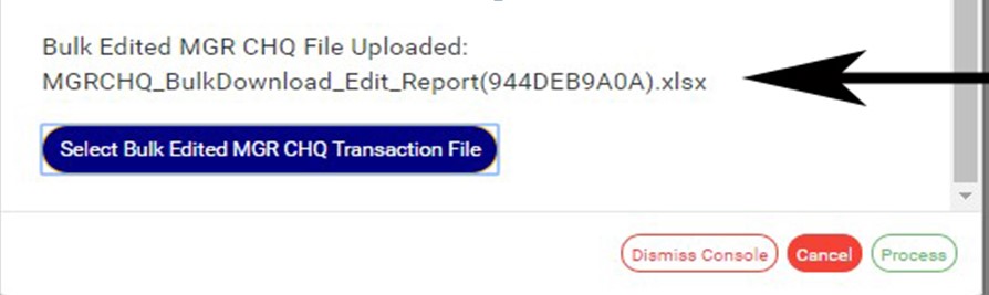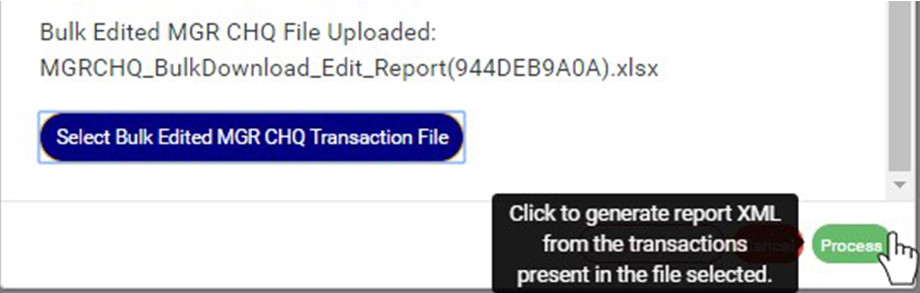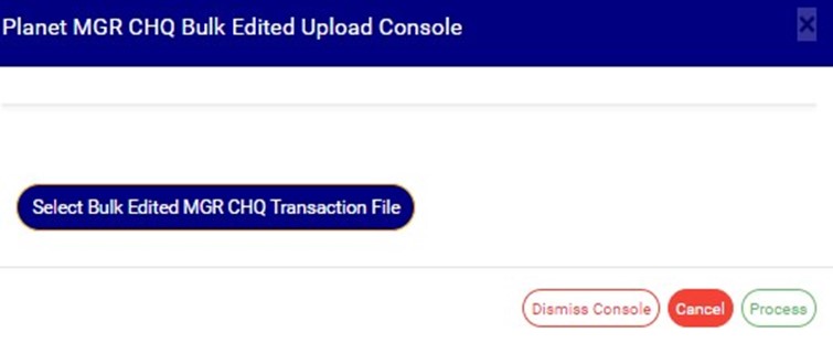 On the MGR CHQ operations page you can make a bulk upload of Edited Manager’s Cheque Transaction records. The process is explained below
