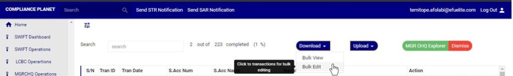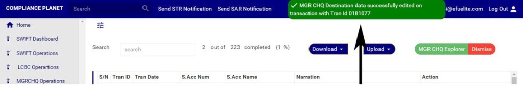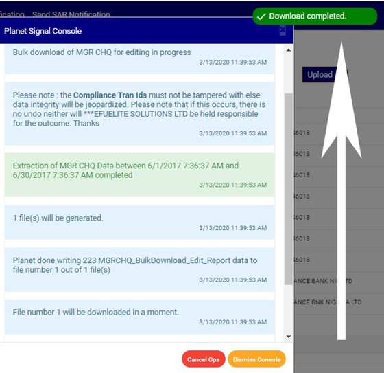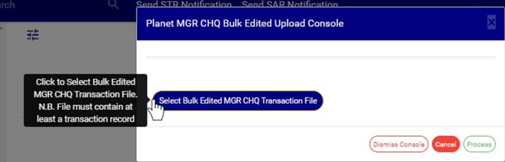 STEP 2: Click the bulk edited data as shown in fig 33.3j above, this will display a ‘Planet MGR CHQ Bulk Edited Upload Console’ as in Fig33.3k below.