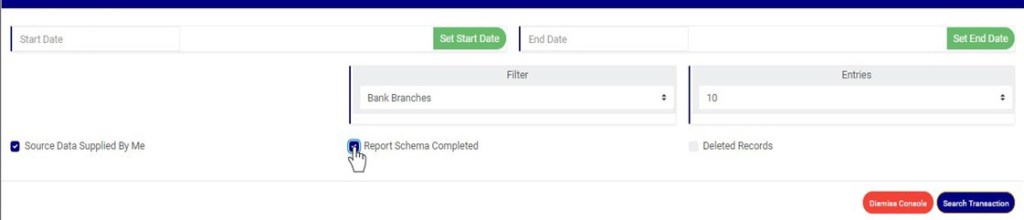 - Select ‘Report Schema Completed’ to see list of Manager’s cheque transactions whose report schema is complete