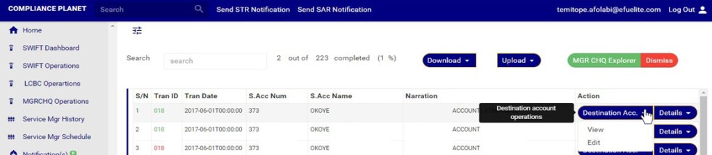 - Click on the ‘Destination Acc.’ Button on the action column as in fig 33.2q below. This will display a dropdown .